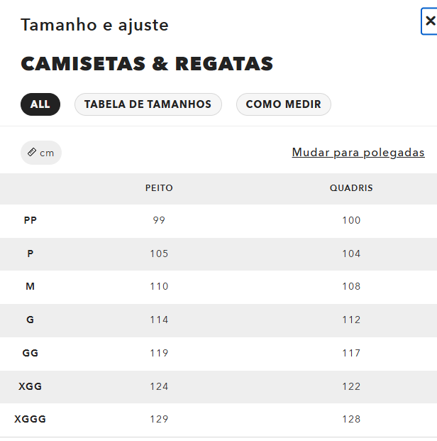 Selecione a opção de Tamanho: